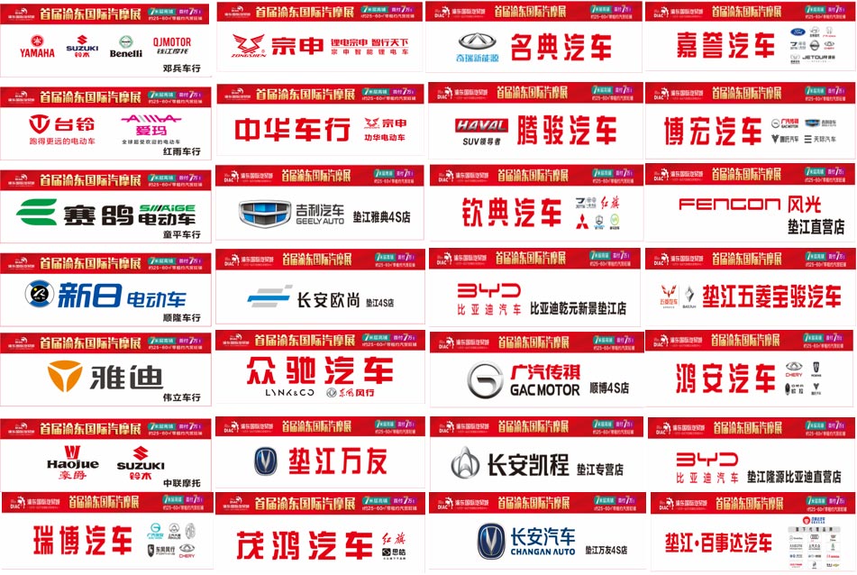 騰駿汽車、嘉譽(yù)汽車、廣汽傳祺、鼎億汽車、比亞迪海洋、威萬利汽車、欽典汽車、重慶車